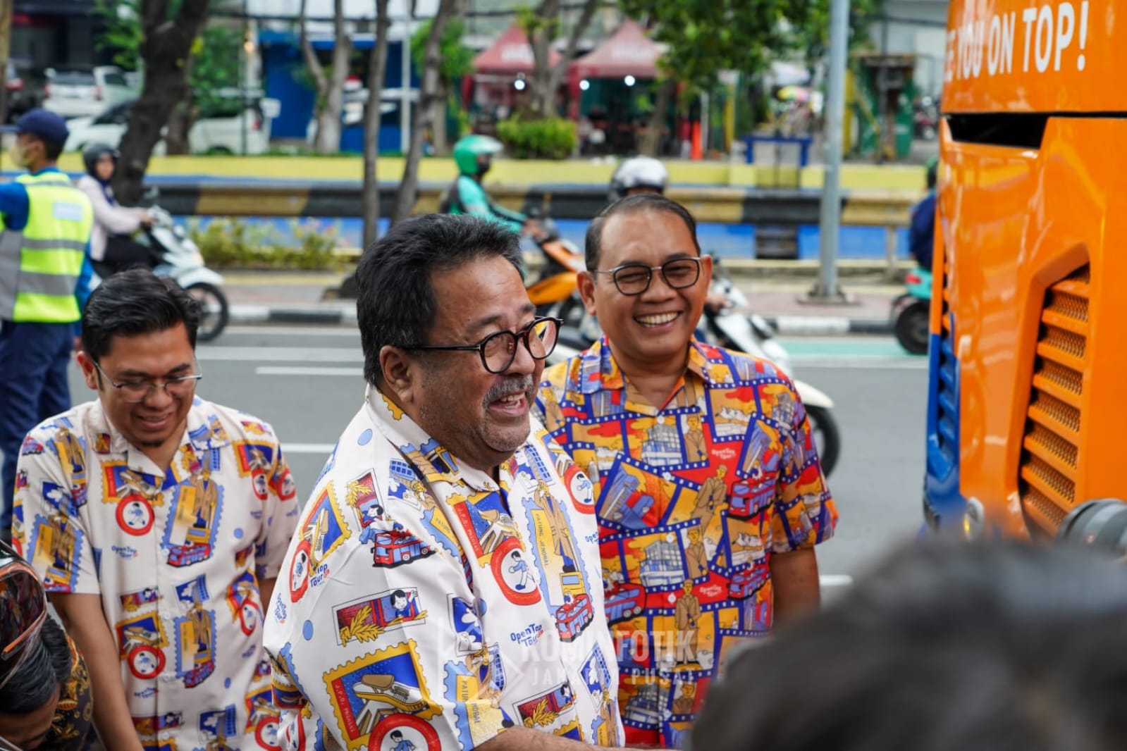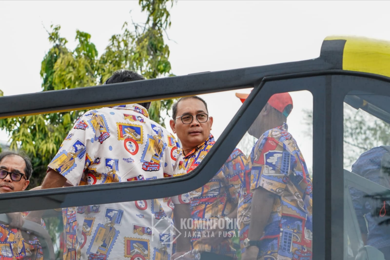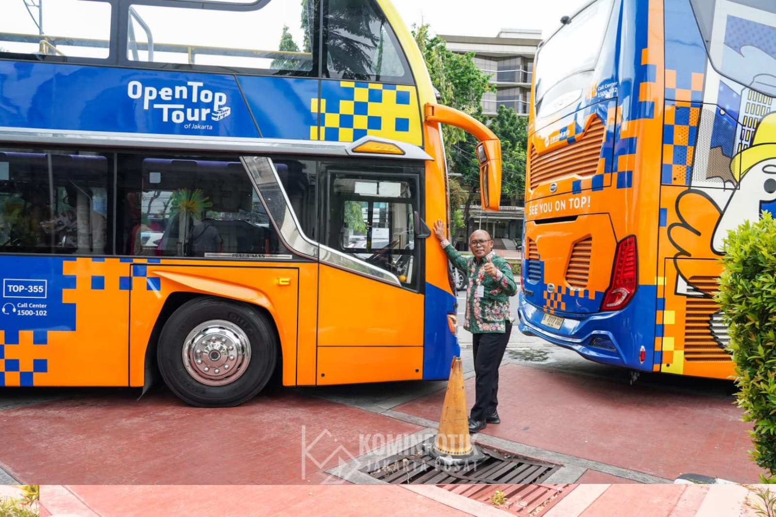 Wali Kota Administrasi Jakarta Pusat Arifin mendampingi Wakil Gubernur DKI Jakarta Rano Karno meluncurkan layanan Bus Open Top Tour of Jakarta rute Jakarta Heritage di Pos Bloc, Kelurahan Pasar Baru, Kecamatan Sawah Besar, Kamis (2/10).