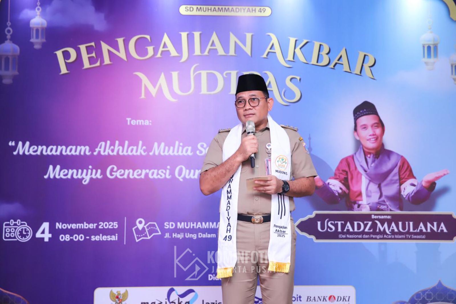 Wali Kota Administrasi Jakarta Pusat Arifin menghadiri Pengajian Akbar SD Muhammadiyah 49 Kemayoran, di halaman sekolah setempat, Selasa (4/11).