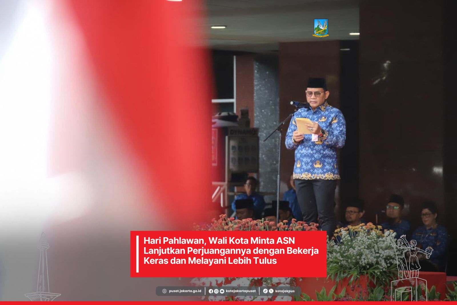 Pemerintah Kota (Pemkot) Administrasi Jakarta Pusat menggelar upacara peringatan Hari Pahlawan Tahun 2025, mengangkat tema 'Pahlawanku Teladanku, Terus Bergerak, Melanjutkan Perjuangan'.