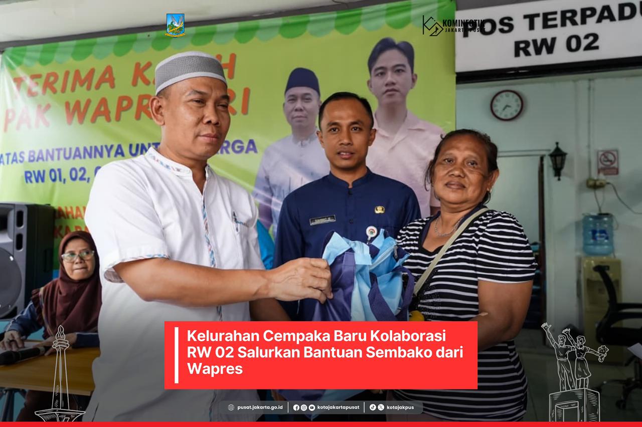 Kelurahan Cempaka Baru berkolaborasi dengan Ketua RW 02 menyerahkan bantuan paket sembako bagi empat RW.