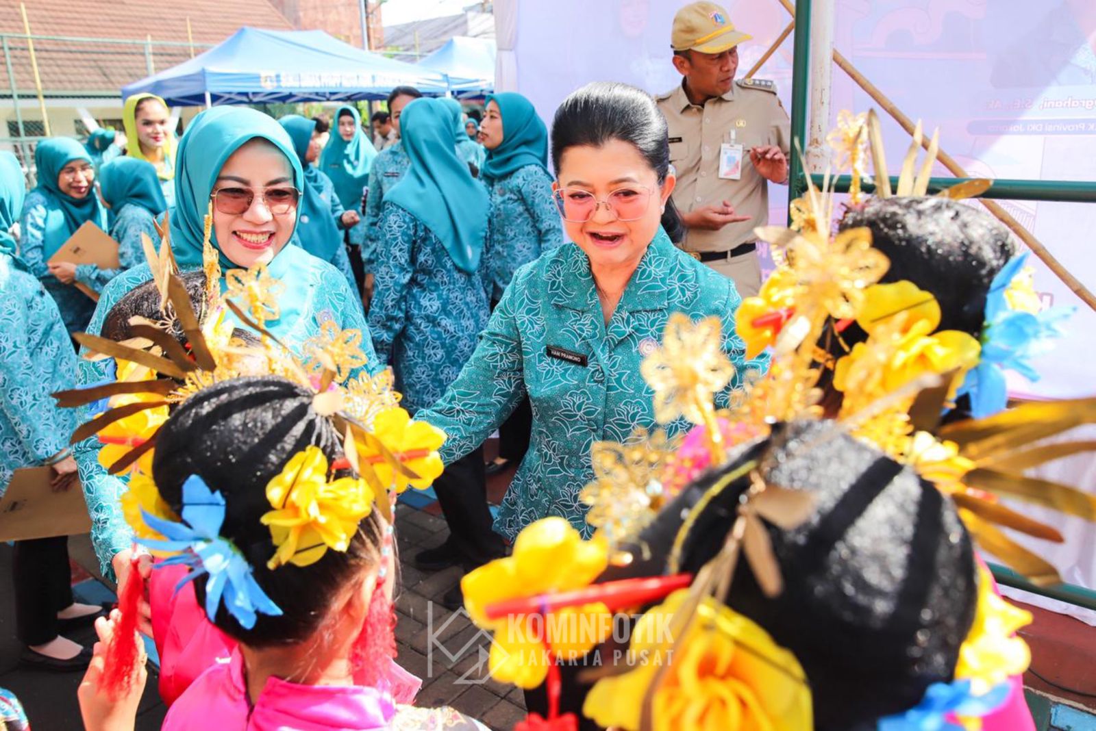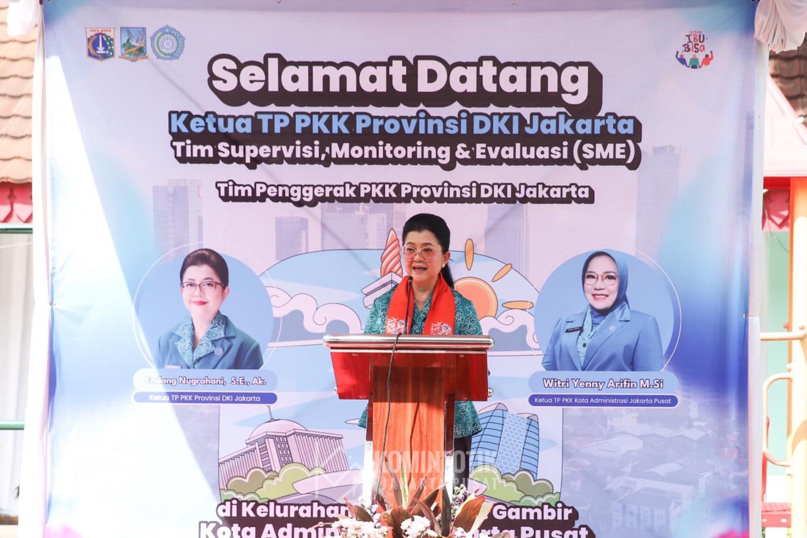 Ketua Tim Penggerak (TP) Pemberdayaan Kesejahteraan Keluarga (PKK) Kota Administrasi Jakarta Pusat Witri Yenny Arifin mendampingi Ketua TP PKK Provinsi DKI Jakarta Endang Nugrahani melakukan Supervisi Monitoring Evaluasi (SME) di RPTRA Mustika, Kelurahan Cideng, Kecamatan Gambir, Senin (17/11) pagi.