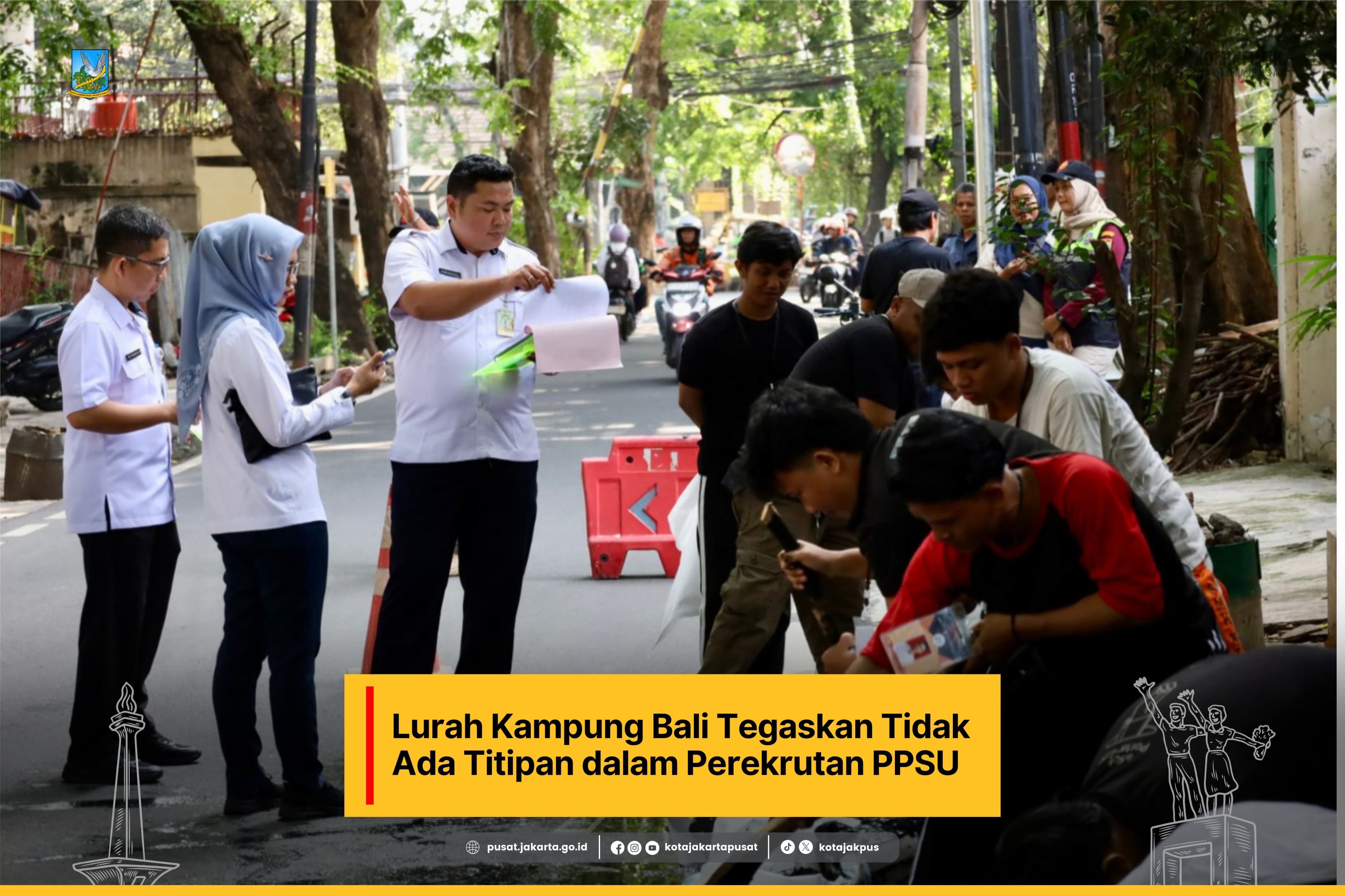 Lurah Kampung Bali Riska Handayani menegaskan dalam perekrutan calon Penanganan Prasarana dan Sarana Umum (PPSU) di wilayahnya tidak ada istilah "titip-titipan" dan pendaftaran bersifat gratis.