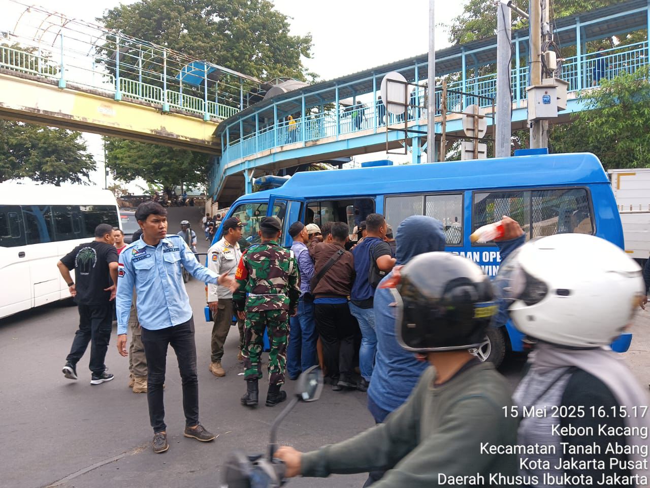 Petugas gabungan mengamankan lima orang penjual obat keras yang dijual ilegal di Jembatan Penyebarangan Multiguna (JPM) Tanah Abang, Jakarta Pusat, Kamis (15/5) sore.