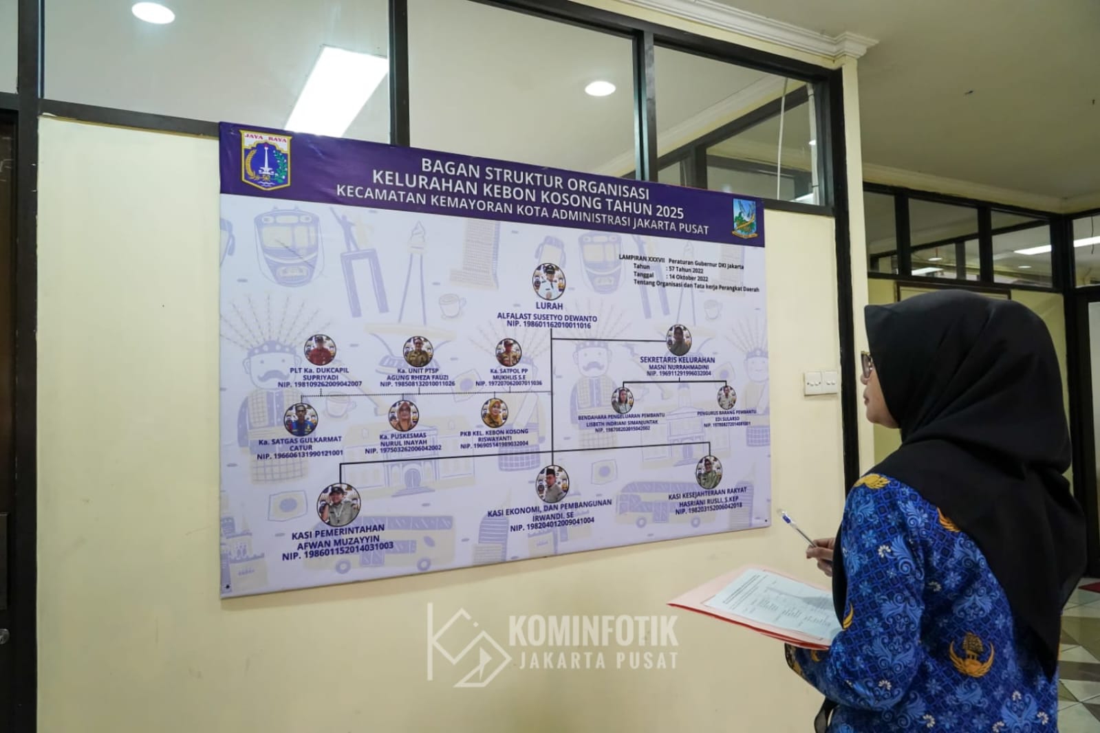 Plt Asisten Pemerintahan (Aspem) Sekko Administrasi Jakarta Pusat Bakwan Ferizan Ginting melakukan monitoring dan evaluasi (monev) pelayanan publik di kantor Lurah Kebon Kosong, Kecamatan Kemayoran, Selasa (20/5).