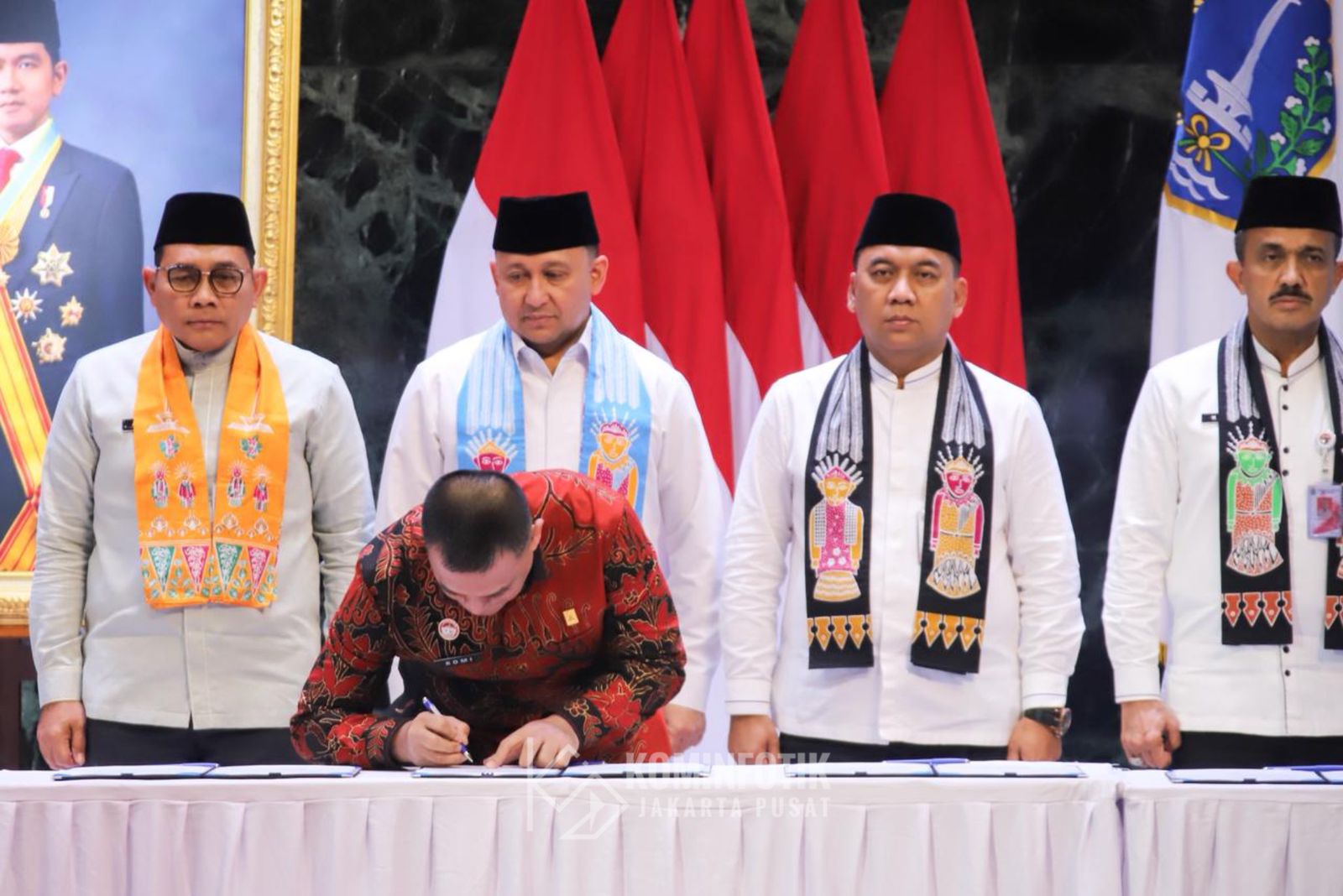 Gubernur DKI Jakarta Pramono Anung menghadiri peresmian dan penandatanganan nota kesepakatan pembentukan Pos Bantuan Hukum (Posbankum) Kelurahan Provinsi DKI Jakarta di Balai Agung, Balai Kota DKI Jakarta, Jumat (31/10).