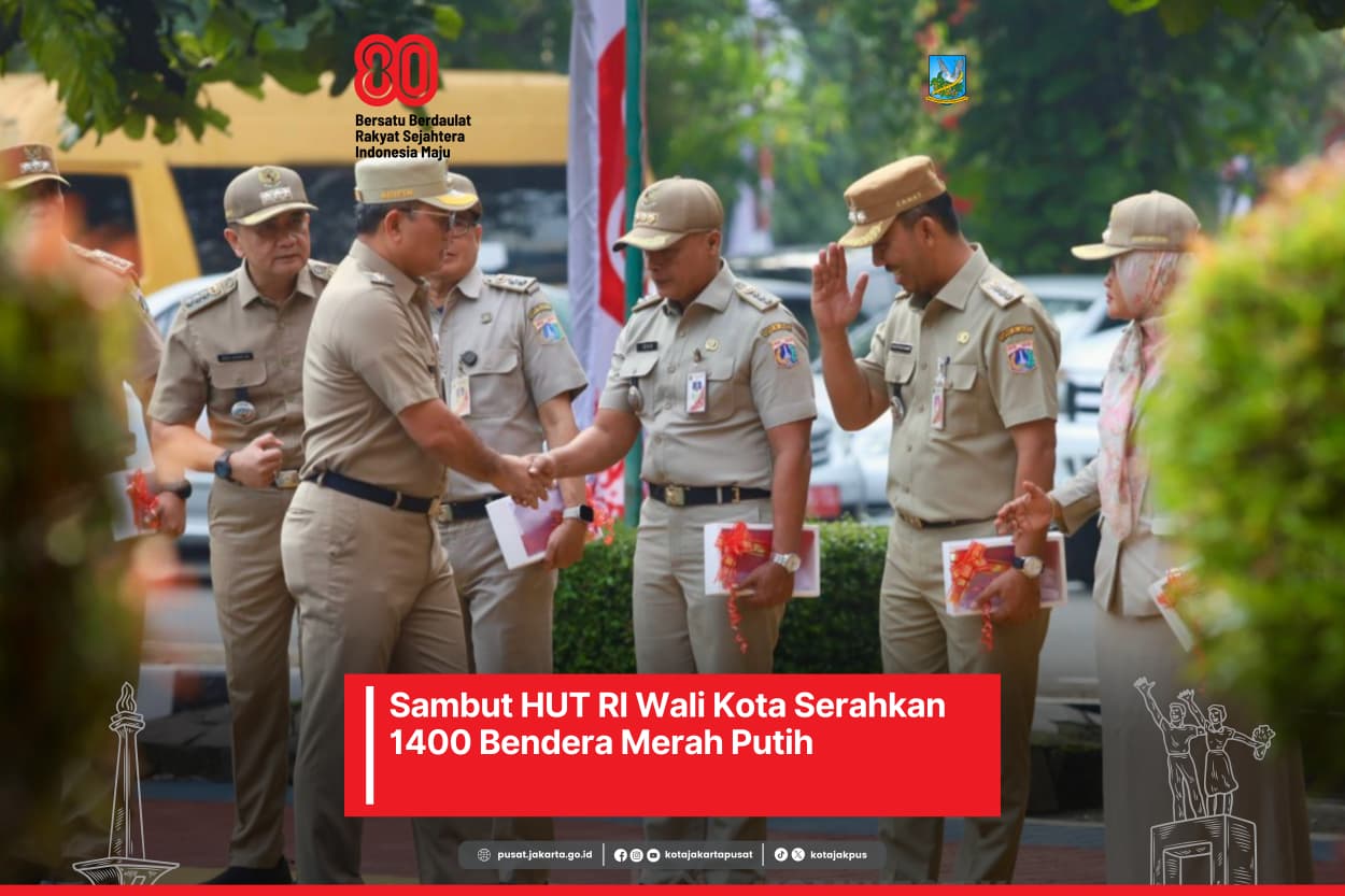 Dalam rangka menyambut HUT ke- 80 RI, Wali Kota Administrasi Jakarta Pusat Arifin, menyerahkan 1400 Bendera Merah Putih untuk delapan kecamatan dan beberapa perwakilan ormas yang ada di Jakarta Pusat. Penyerahan dilakukan berbarengan dengan Apel Senin Pagi yang diikuti seluruh jajaran Pemerintah Kota Jakarta Pusat, di Plaza Kantor Wali Kota Jakarta Pusat, Jalan Tanah Abang I, Gambir, Senin (11/8).