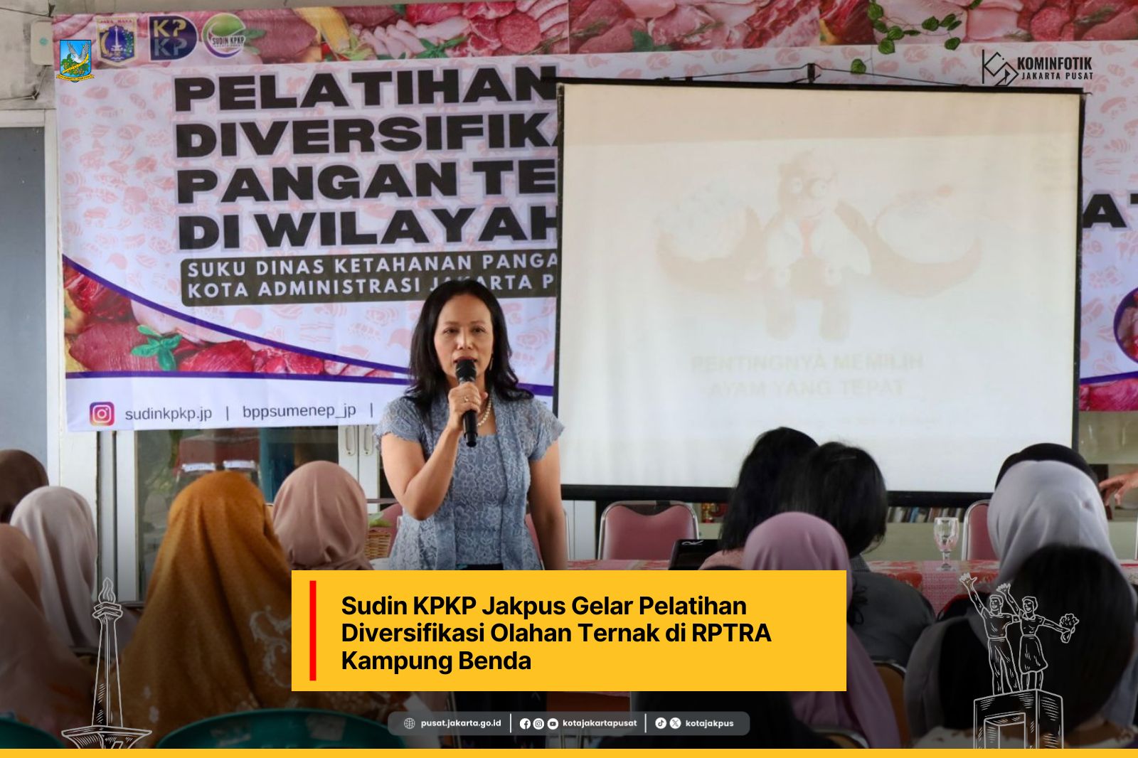 Suku Dinas (Sudin) Ketahanan Pangan, Kelautan, dan Pertanian (KPKP) Kota Administrasi Jakarta Pusat menggelar pelatihan diversifikasi olahan ternak di RPTRA Kampung Benda, Jalan Cempaka Putih Tengah XV, Kelurahan Cempaka Putih Timur, Kecamatan Cempaka Putih, Selasa (15/7).