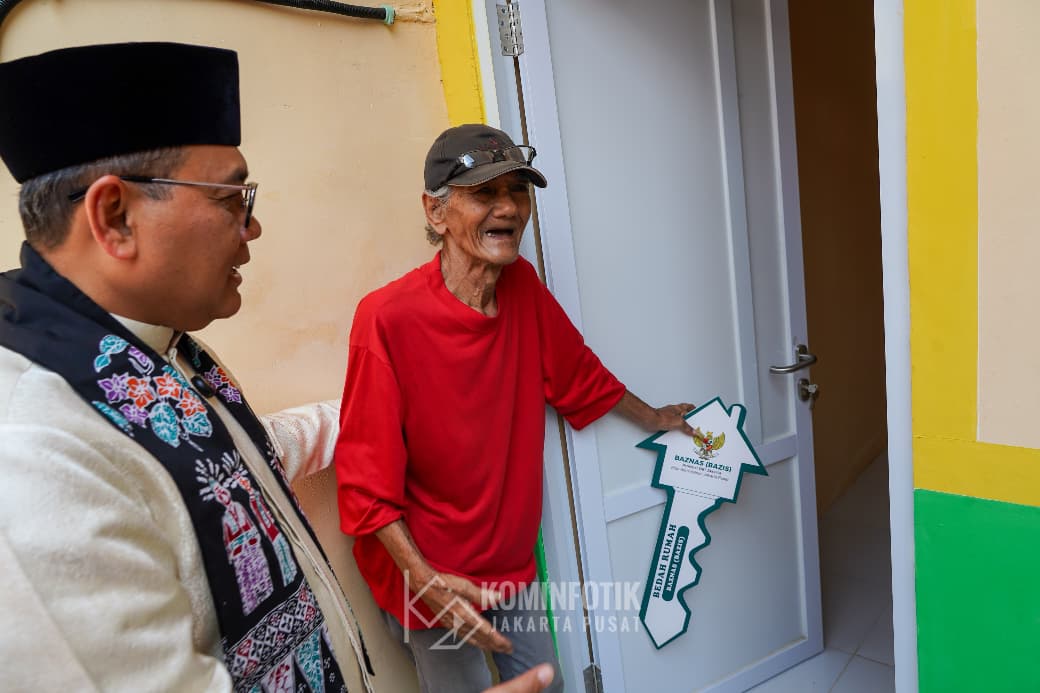 Tepat di hari Kemerdekaan Republik Indonesia (RI) ke-80, Wali Kota Administrasi Jakarta Pusat Arifin menyerahkan kunci hasil Bedah Rumah Baznas Bazis ke pak Bambang, di Jalan Sukabumi IV, RT 15/RW 03, Kelurahan Menteng, Kecamatan Menteng, Minggu (17/8).