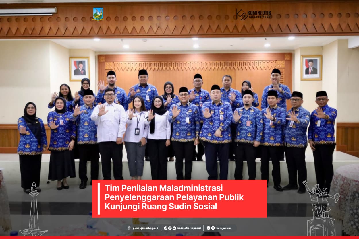 Tim Penilai Maladministrasi Penyelenggaraan Pelayanan Publik dari Ombudsman RI Perwakilan Jakarta Raya mengunjungi Ruang Suku Dinas Sosial Kota Administrasi Jakarta Pusat.