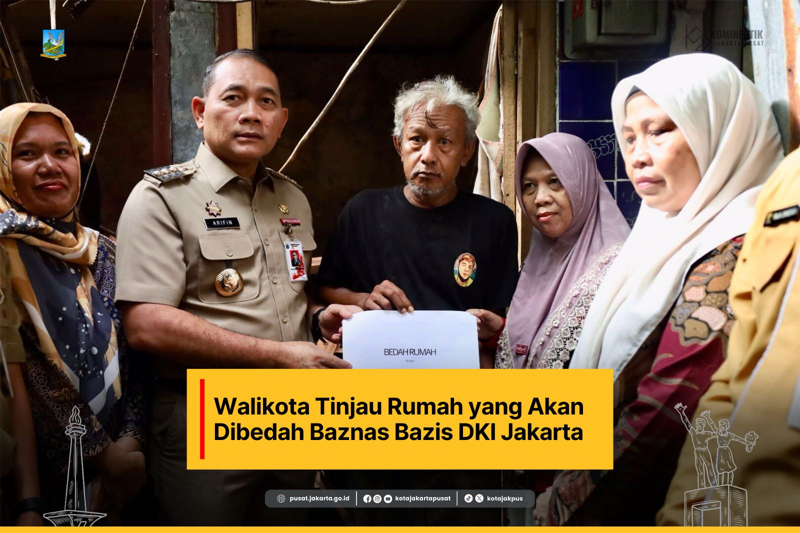 Wali Kota Administrasi Jakarta Pusat Arifin meninjau rumah warga tidak layak huni yang rencananya akan dilakukan bedah rumah oleh Baznas Bazis DKI Jakarta, berada di Jalan Kalibaru Timur Gang I RT 07/06 Kelurahan Bungur, Kecamatan Senen, Selasa (25/2).