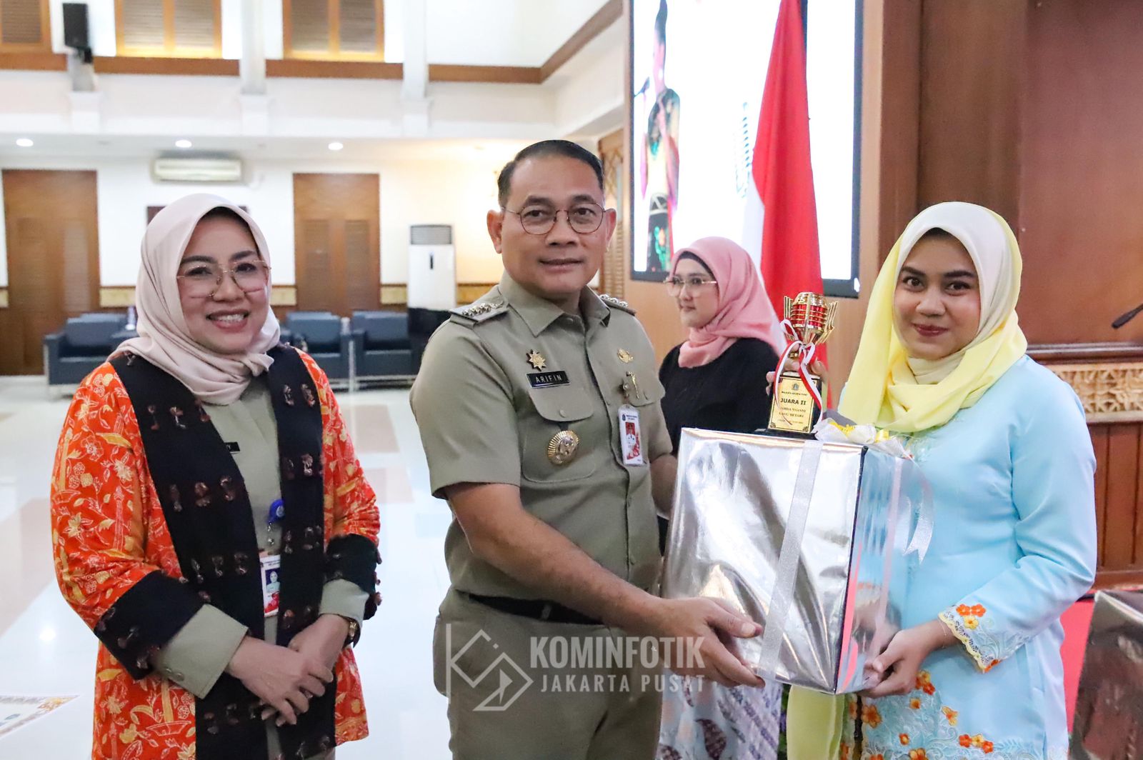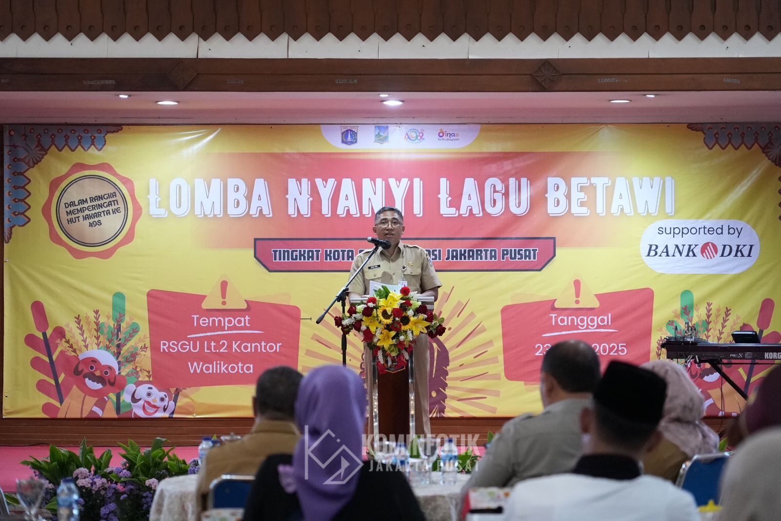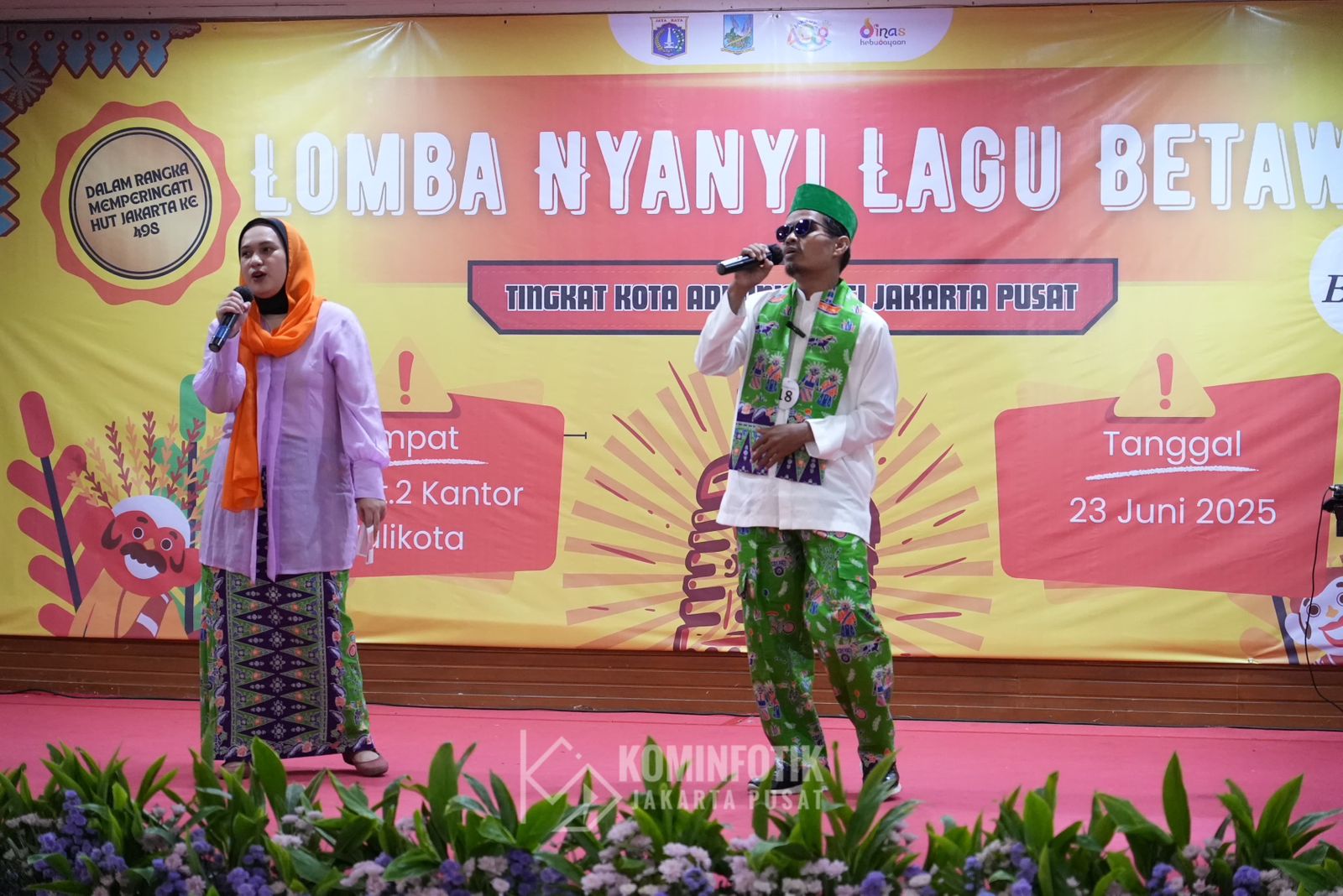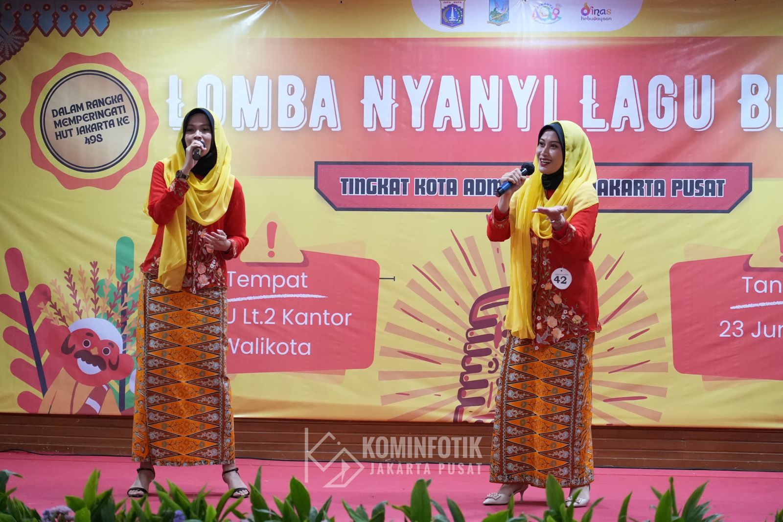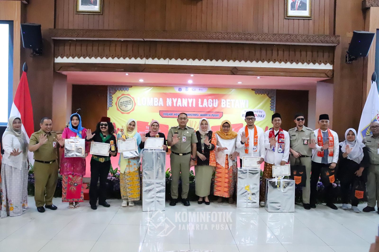 Wali Kota Administrasi Jakarta Pusat Arifin memberikan sertifikat, piala, dan hadiah kepada para pemenang Lomba Menyanyi Lagu Betawi yang diselenggarakan oleh Suku Dinas (Sudin) Kebudayaan dalam rangka memeriahkan HUT ke-498 Kota Jakarta.