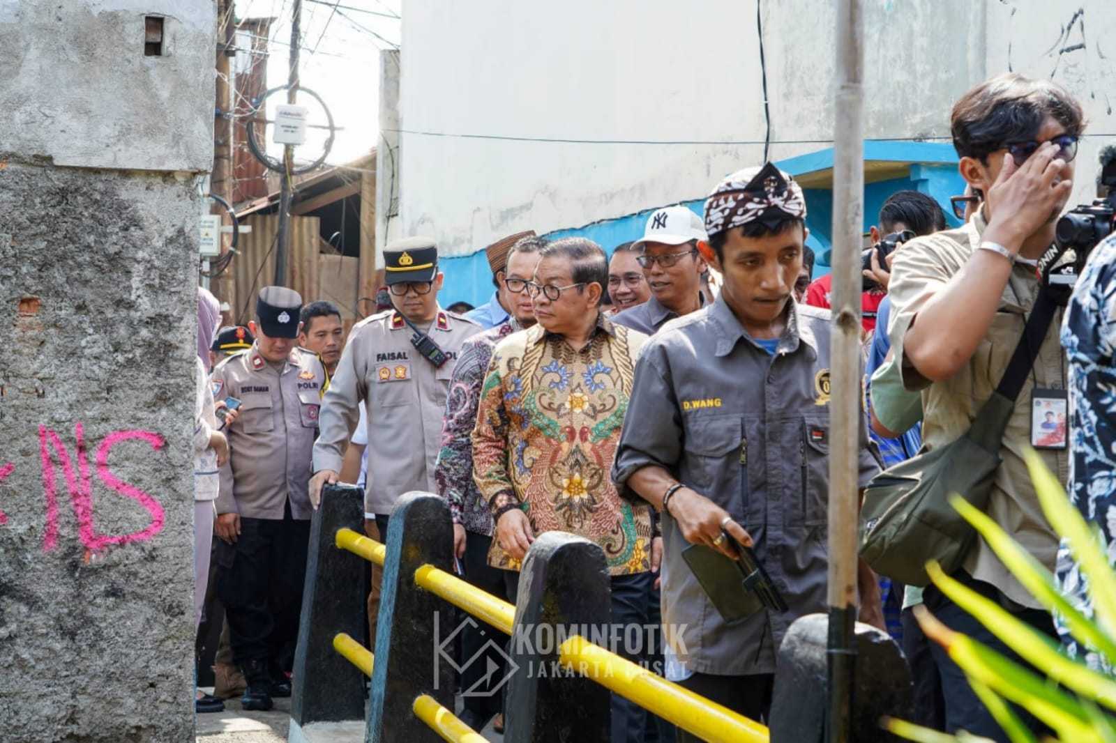 Wali Kota Administrasi Jakarta Pusat Arifin mendampingi Gubernur DKI Jakarta Pramono Anung mengunjungi Lokasi Penuntasan RW Kumuh di RW 01, Kelurahan Menteng, Kecamatan Menteng, Kamis (15/5).