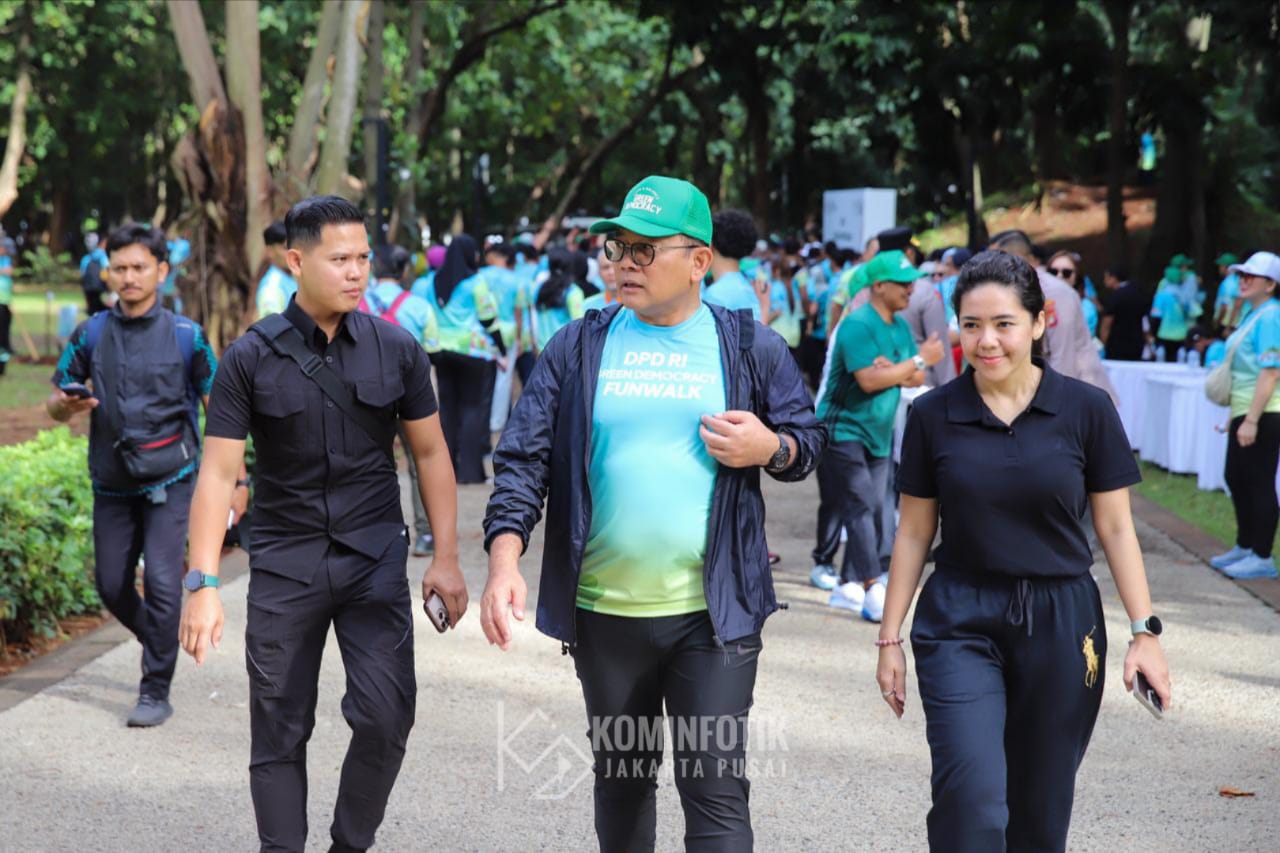 Wali Kota Administrasi Jakarta Pusat Arifin menghadiri acara Green Democracy Fun Walk dalam rangka memperingati Hari Ulang Tahun (HUT) Dewan Perwakilan Daerah Republik Indonesia (DPD RI) ke-21, di Plaza Timur Gelora Bung Karno (GBK), Kelurahan Gelora, Kecamatan Tanah Abang, Minggu (9/11).