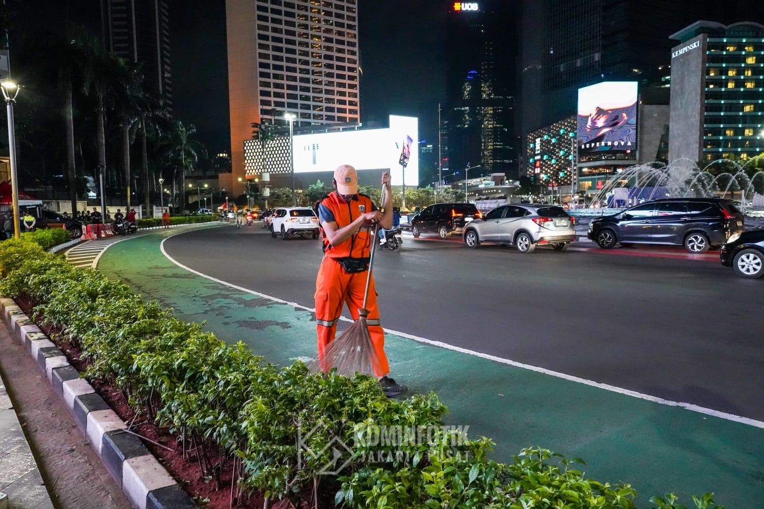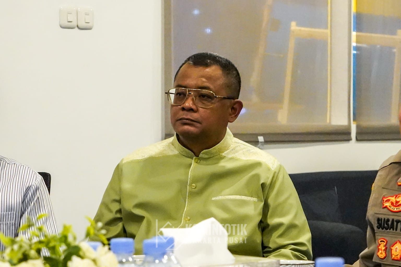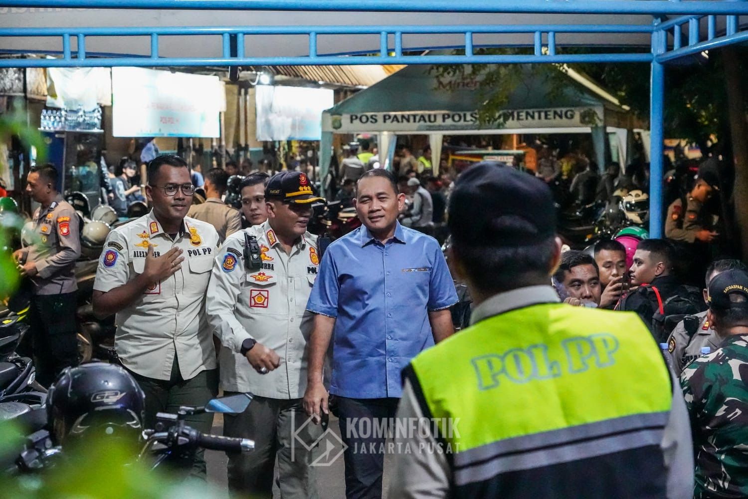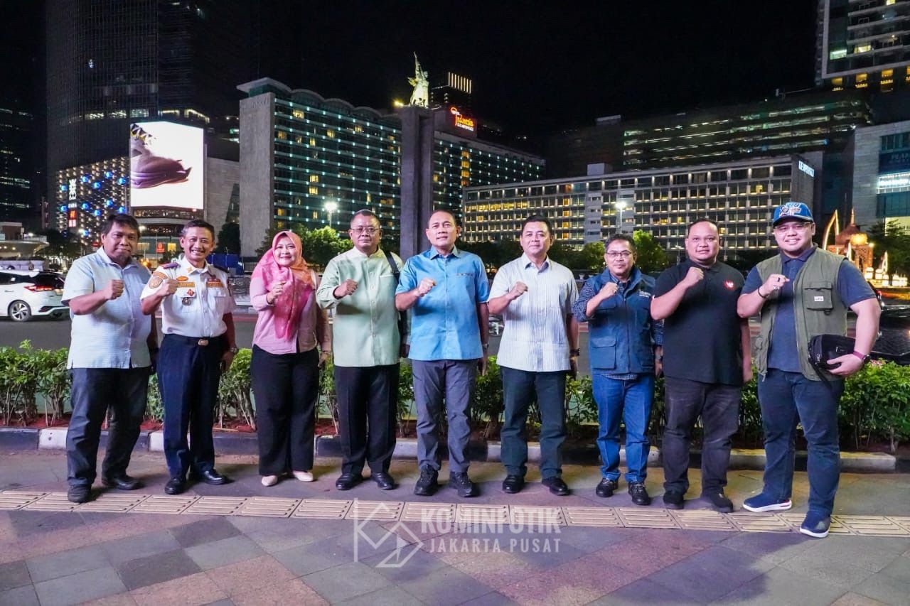 Walikota Administrasi Jakarta Pusat Arifin beserta jajaran Pemerintah Kota mengikuti pemantauan perkembangan Sitkamtibmas malam takbiran menjelang hari raya idul Fitri 1446 H di Pospol Bunderan HI, Kecamatan Menteng, Jakarta Pusat, Minggu (30/3).