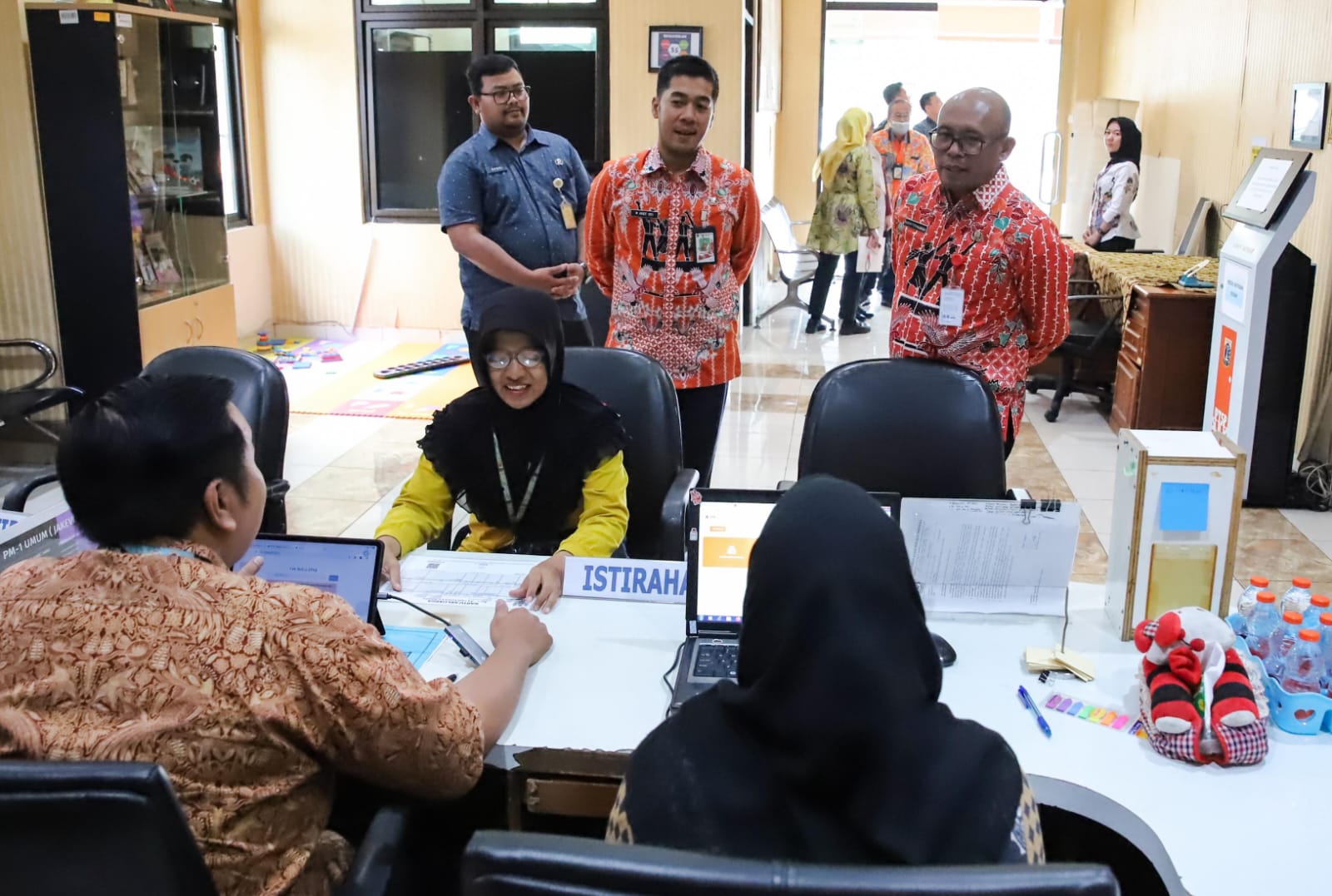 Plt Asisten Pemerintahan (Aspem) Kota Administrasi Jakarta Pusat Bakwan Ferizan Ginting melakukan monitor dan evaluasi (monev) pelayanan publik di kantor Lurah Rawasari, Kecamatan Cempaka Putih, Kamis (5/6).