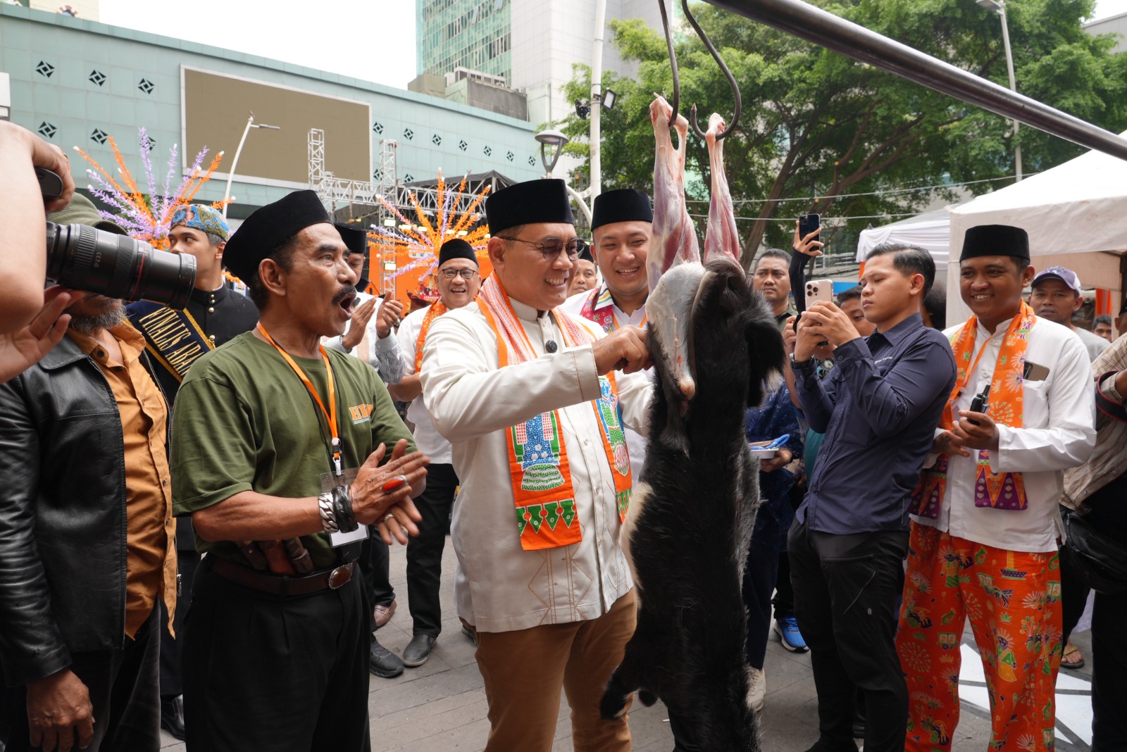 Wali Kota Administrasi Jakarta Pusat Arifin secara simbolis menyerahkan ratusan paket sembako, satunan anak yatim, dan pemberian santunan jaminan kematian bagi tiga PJLP.