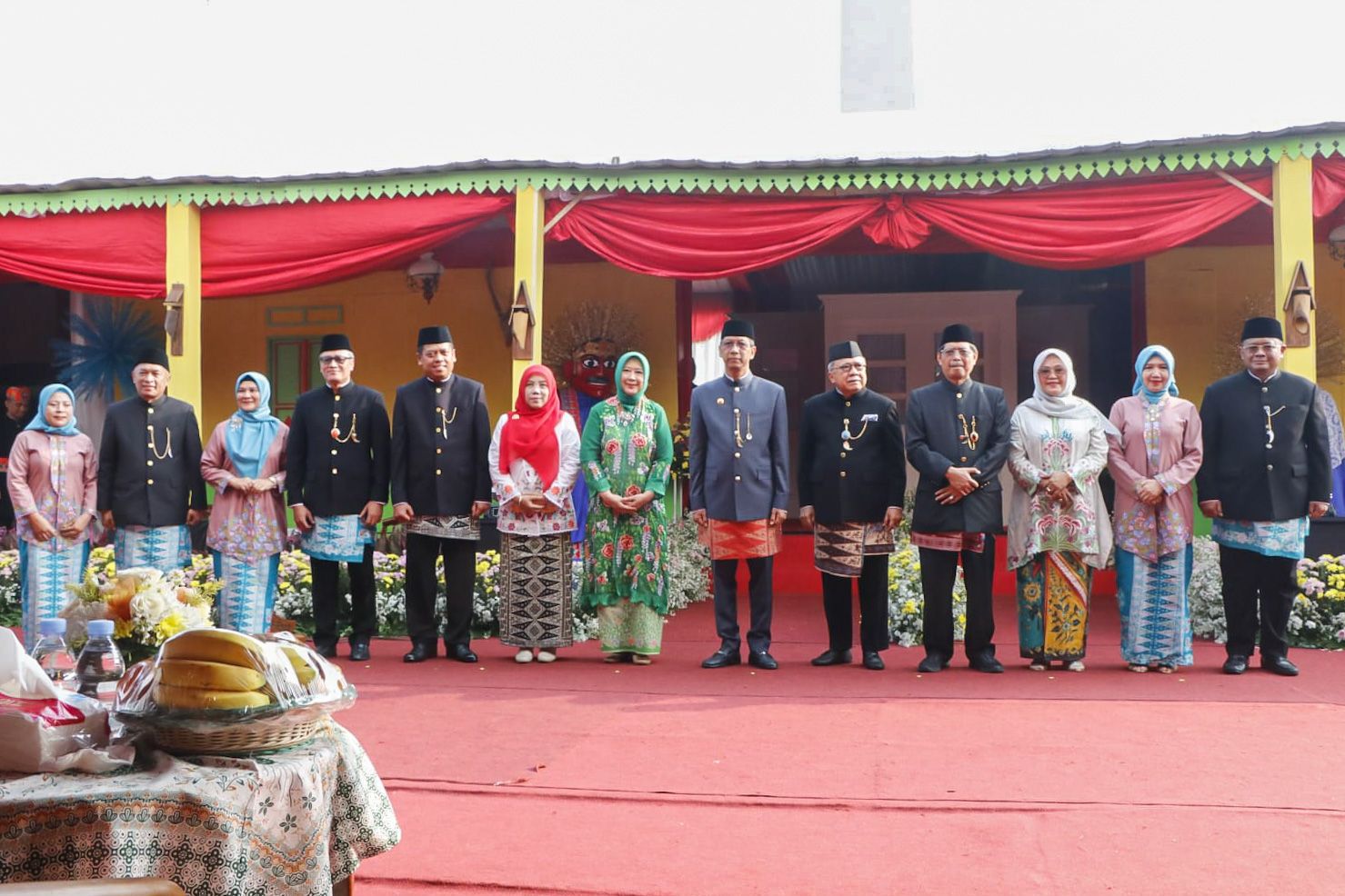 Wali Kota Administrasi Jakarta Pusat Dhany Sukma didampingi sang Istri Ucu Jamilah beserta jajaran pejabat dilingkungan Pemerintah Kota (Pemkot) Administrasi Jakarta Pusat menghadiri Lebaran ...