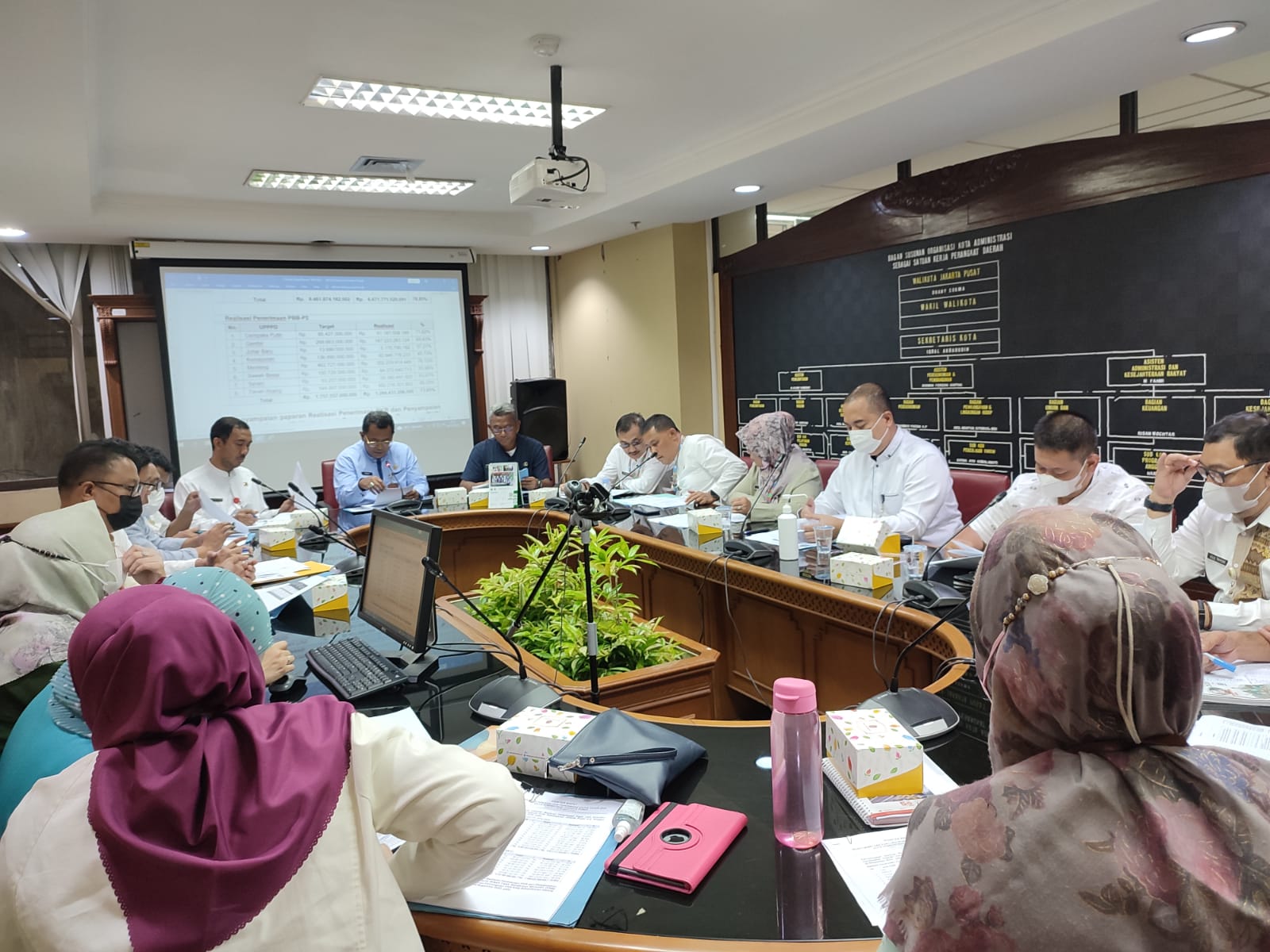 Asisten Pemerintahan (Aspem) Setko Administrasi Jakarta Pusat Denny Ramdany membuka rapat monitoring dan evaluasi (monev) pajak Tahun 2022 serta penetapan pajak Tahun 2023, di Ruang Rapat Wakil Wal...