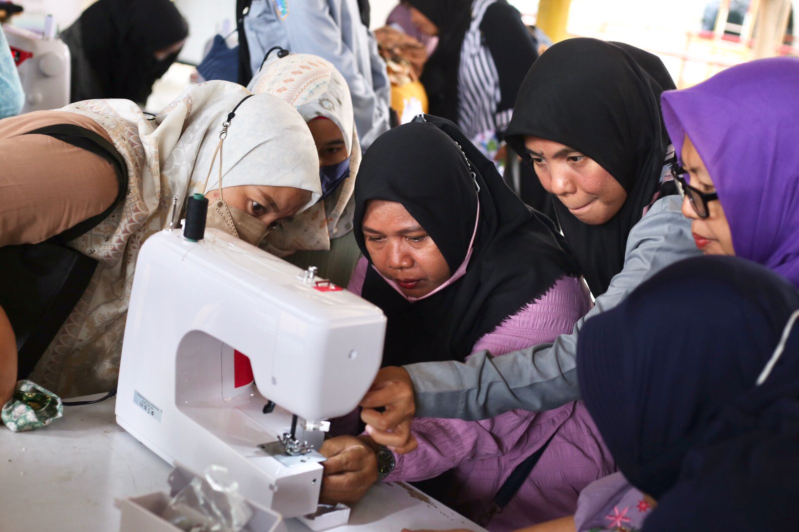 Suku Dinas (Sudin) Ketenagakerjaan, Transmigrasi, dan Energi (Nakertransgi) Kota Administrasi Jakarta Pusat menggelar pelatihan pemanfaatan kain perca, di RPTRA Kampung Benda, Kelurahan Cempaka Put...
