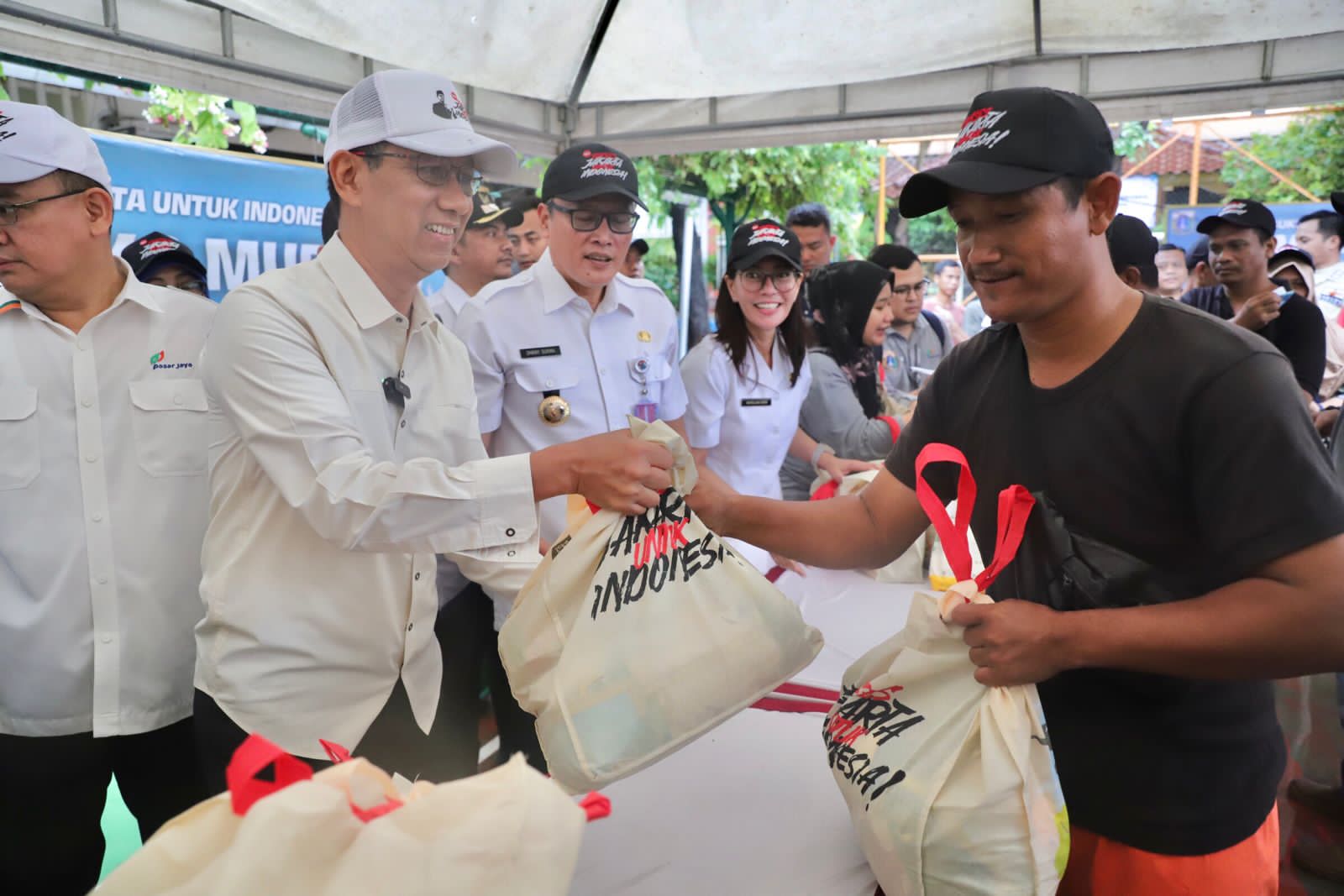 Pemerintah Provinsi (Pemprov) DKI Jakarta bersama Badan Usaha Milik Daerah (BUMD) menyediakan 1.000 paket sembako murah, di Ruang Publik Terpadu Ramah Anak (RPTRA) Pulo Gundul, Kelurahan Tanah Ting...